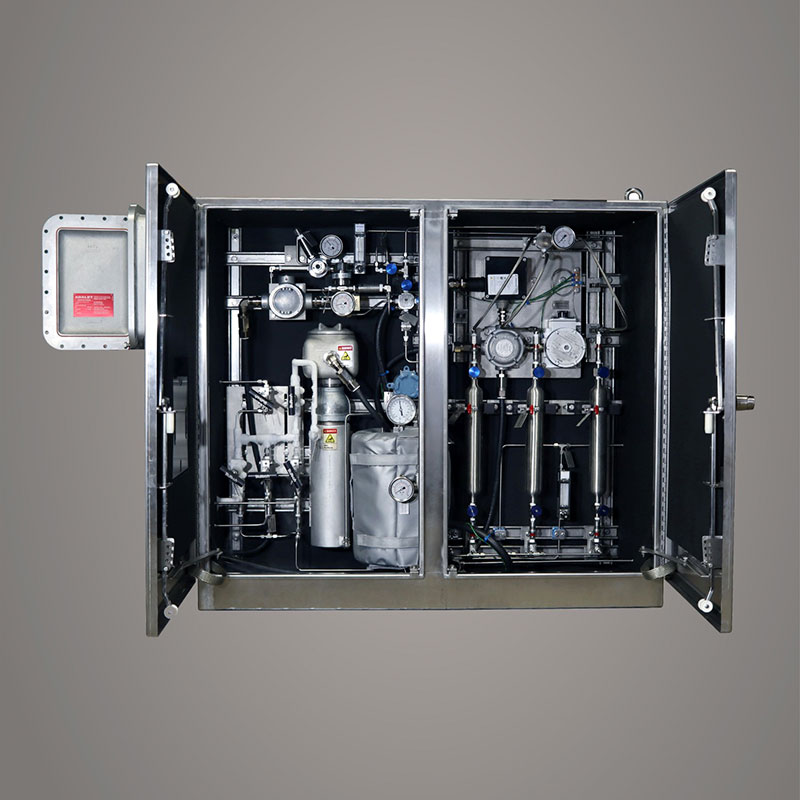 O SKIDM é o único sistema capaz de medir e calcular as vazões de água, óleo e gás, instantaneamente, sem separação de fases e sem fonte radioativa.