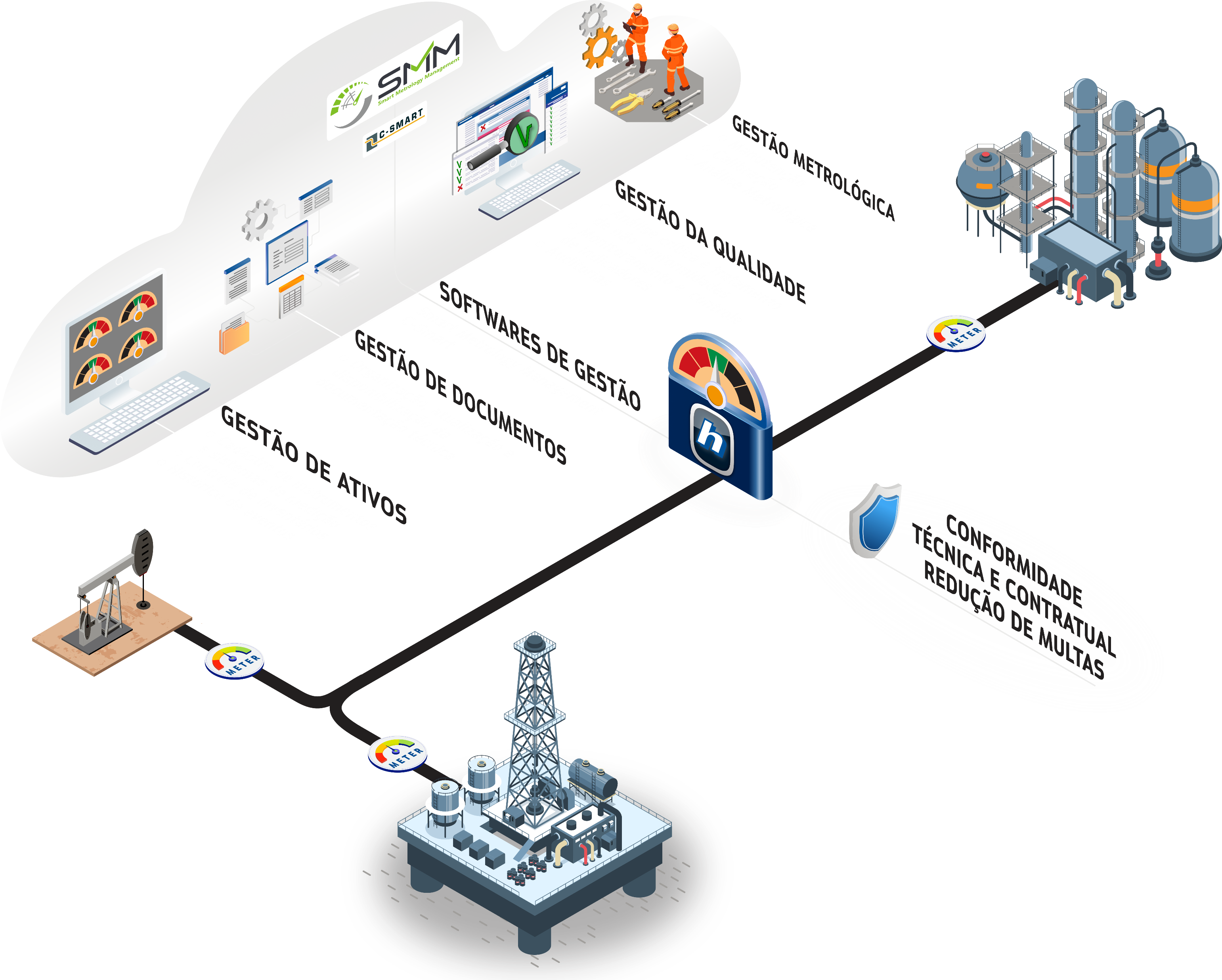 O C-SMART é um software em nuvem, que integra o portifólio de soluções da Hirsa e potencializa a gestão de alta performance da medição de Gás Natural, em tempo real. Utiliza o estado da arte da tecnologia como inteligência aumentada e a construção de gêmeos digitais das estações de medição para identificar, quantificar e eliminar os erros de medição.